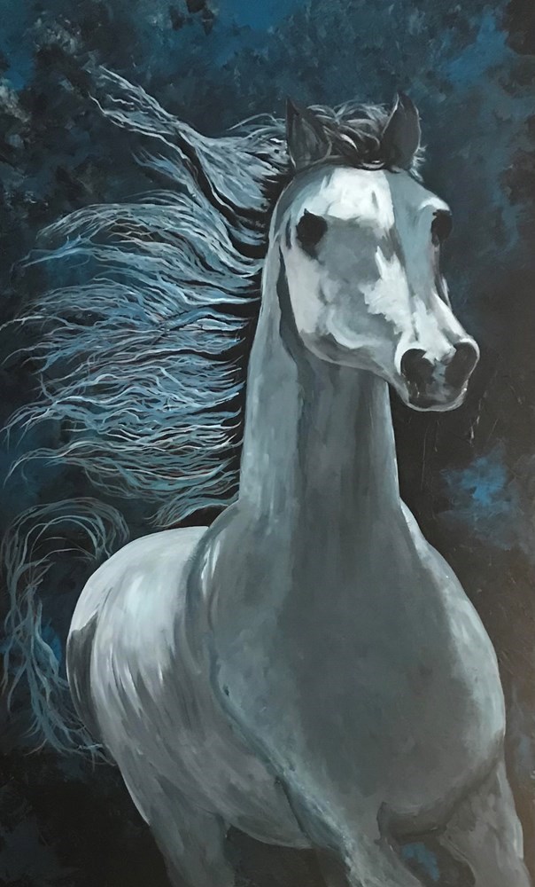 "War Horse" is a prophet expression by Roxanna Des Jardins, and media is acrylic on canvas.